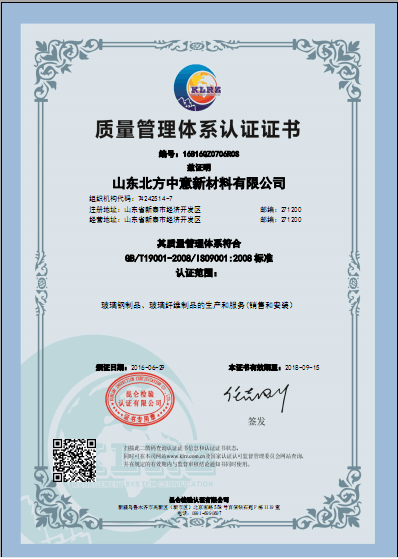 隨著雙層油罐及大口徑玻璃鋼煙囪的快速推向市場,公司產(chǎn)品市場越來越高端化。新的發(fā)展形勢和面對高端客戶的需要,公司質(zhì)量管理及環(huán)境和職業(yè)健康要求越來越高。通過公司上下的共同努力,公司于2016年6月順利通過ISO9001質(zhì)量體系和ISO14001環(huán)境體系及OHSAS18001職業(yè)健康體系三證認(rèn)證,標(biāo)志著公司逐步邁向規(guī)范化發(fā)展的道路。