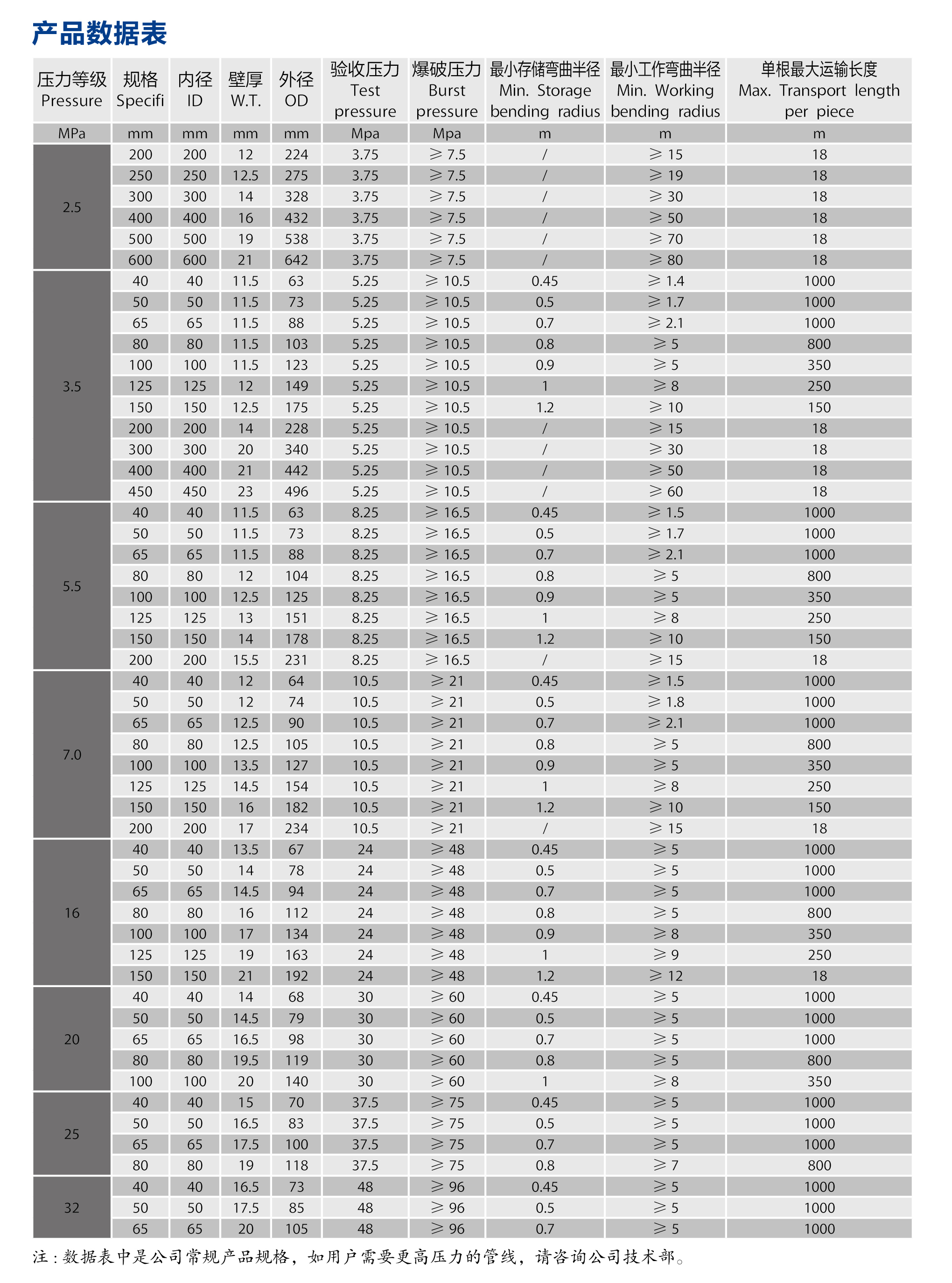 公司從德國引進(jìn)的柔性纖維增強(qiáng)非金屬管道(RTP)的生產(chǎn)設(shè)備與工藝技術(shù),能生產(chǎn)高壓柔性非金屬管道和管件,同時(shí)公司有先進(jìn)的產(chǎn)品檢驗(yàn)、實(shí)驗(yàn)設(shè)備及嚴(yán)格的產(chǎn)品質(zhì)量保證體系。
