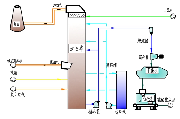 氨法煙氣脫硫技術(shù)是采用氨水做吸收劑除去煙氣中SO2等污染物的煙氣凈化技術(shù)。氨是一種良好的堿性吸收劑,從吸收化學(xué)機(jī)理上分析,吸收劑堿性越強(qiáng),越利于吸收;從吸收物理機(jī)理上分析,氨吸收SO2是氣-液或氣-氣反應(yīng),反應(yīng)速率快,反應(yīng)完全。正是由于氨法脫硫工藝自身的些特點(diǎn),對(duì)于我國(guó)的一些地區(qū)具有一定的吸引力。