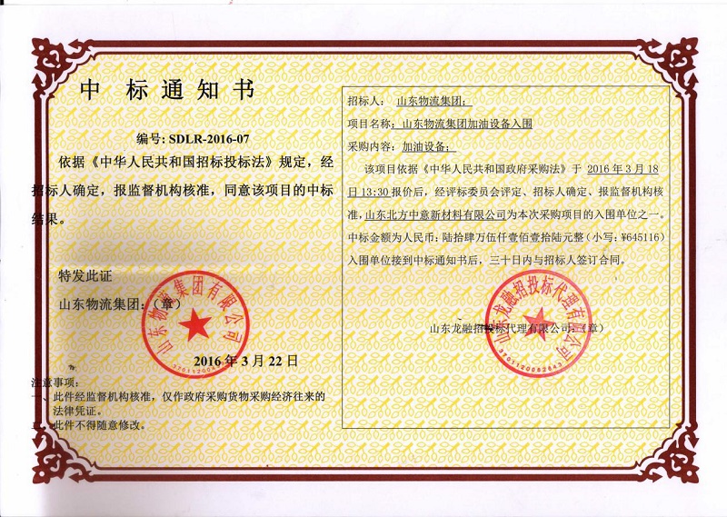 公司雙層油罐項(xiàng)目加速發(fā)展,成功入圍山東物流集團(tuán)加油設(shè)備招標(biāo),負(fù)責(zé)所有工藝電氣設(shè)備(含儲(chǔ)罐)的安裝、調(diào)試工作。使公司由原先的單純雙層儲(chǔ)油罐生產(chǎn)商跨越到加油站設(shè)備安裝承包商,為公司今后在加油設(shè)備領(lǐng)域的開(kāi)拓與發(fā)展打下良好基礎(chǔ)。